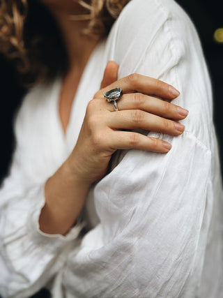 Todas las piezas son elaboradas con amor e intención, utilizando plata reciclada y piedras naturales cuidadosamente seleccionadas, en respeto profundo por la Tierra y por cada proceso artesanal.