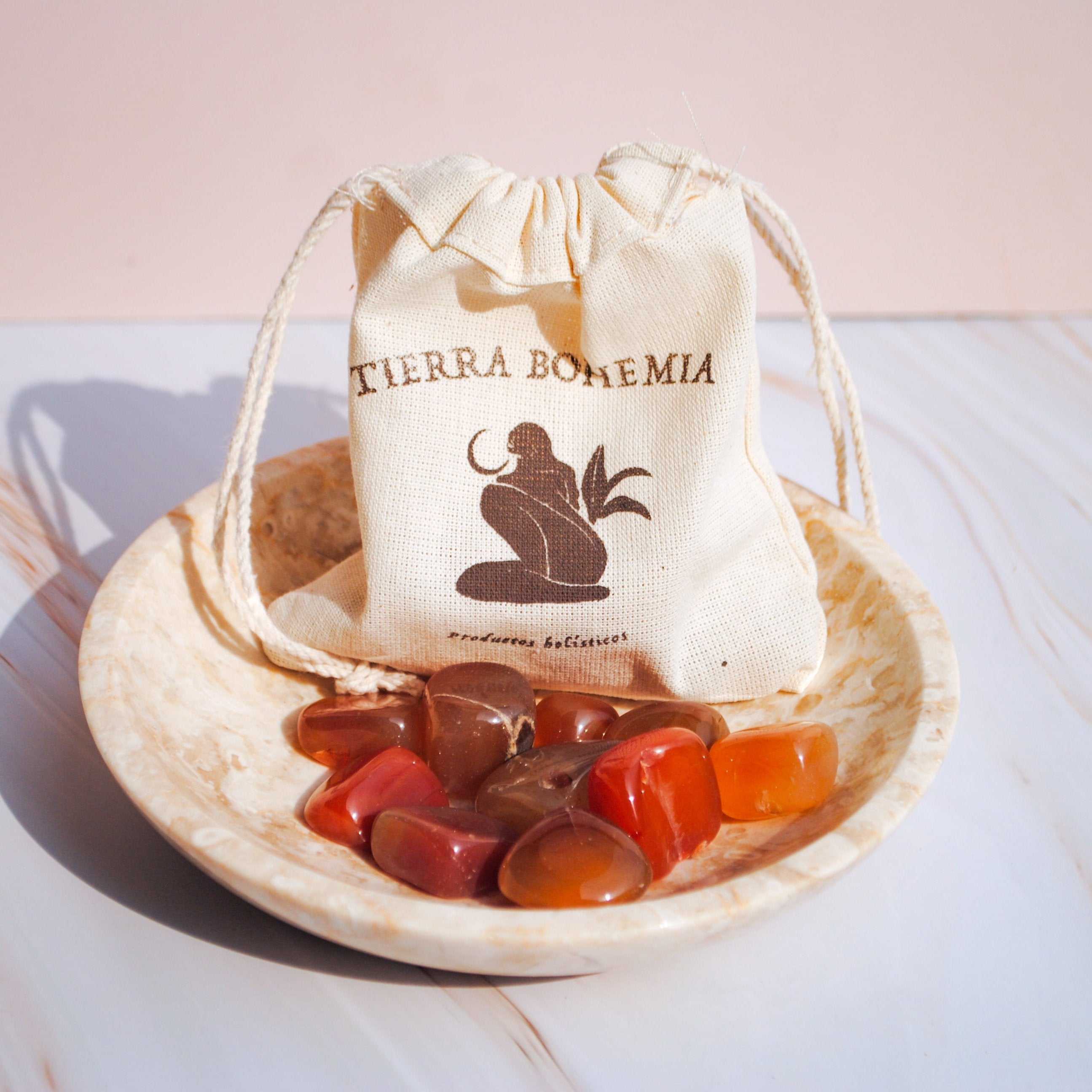 La cornalina es una piedra vibrante de energía y vitalidad, estimula la creatividad, la confianza y la motivación.
