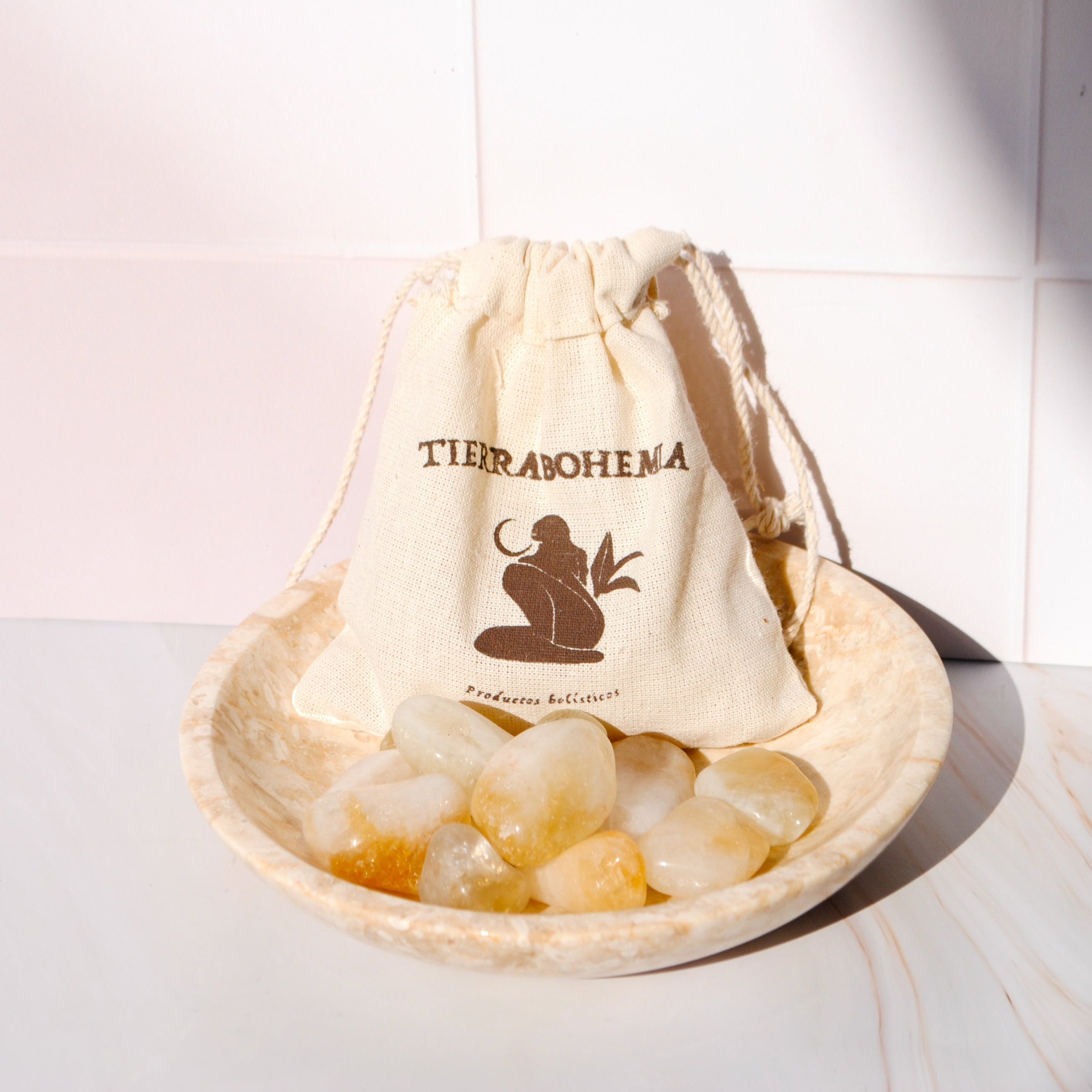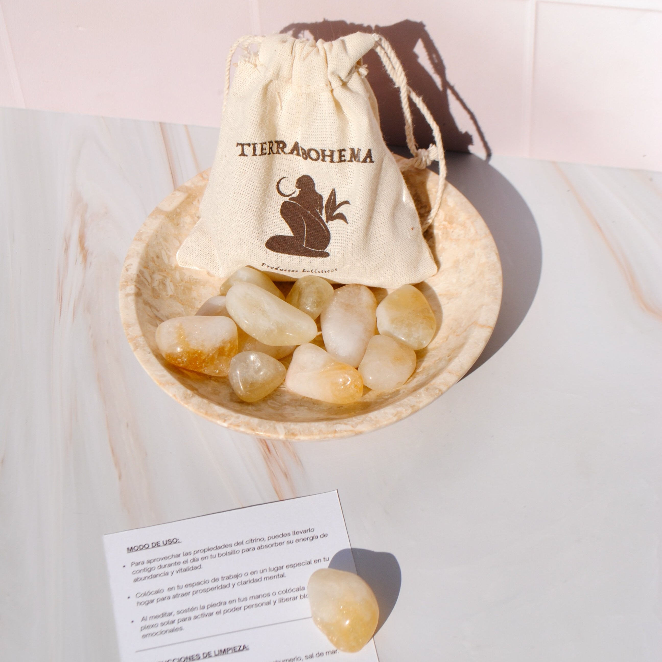 El citrino es una piedra asociada con la abundancia, la energía positiva y la claridad mental.